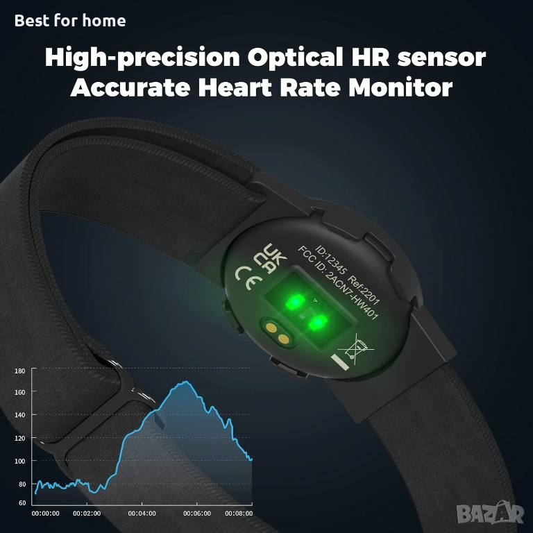 Прецизен сензор за сърдечен ритъм за носене с каишка за ръка: Оптична сензорна технология за високопрецизен пулсомер, който е тестван милиони пъти и има точност до ±1 удара в минута. Той записва данни за сърдечния ритъм в реално време по време на тренировка и анализира данните за вашата физическа подготовка, за да увеличи максимално резултатите от тренировката.