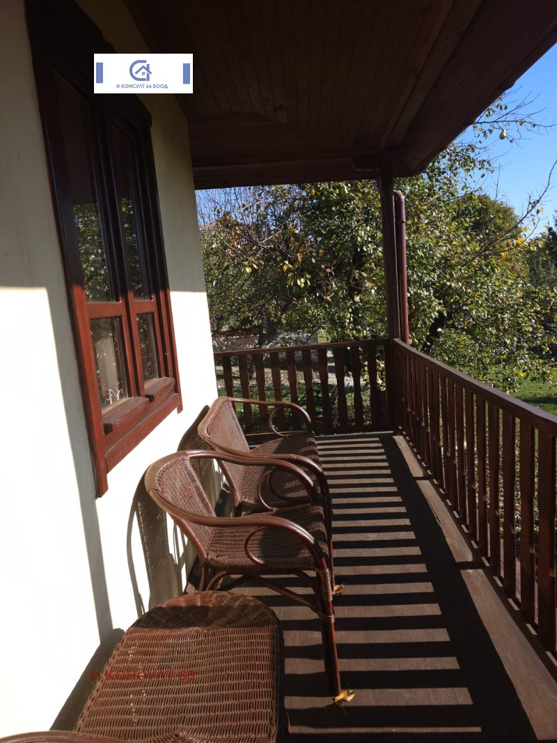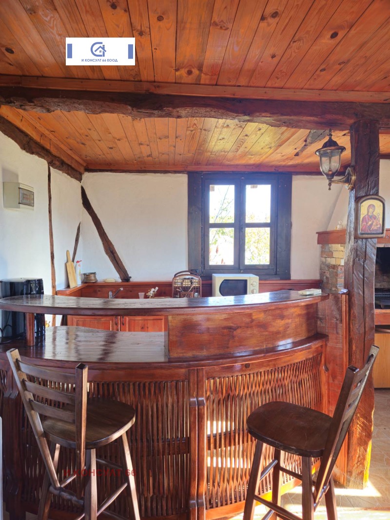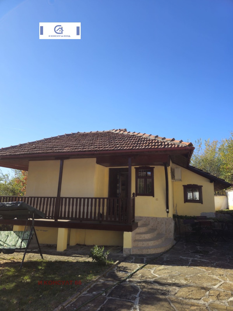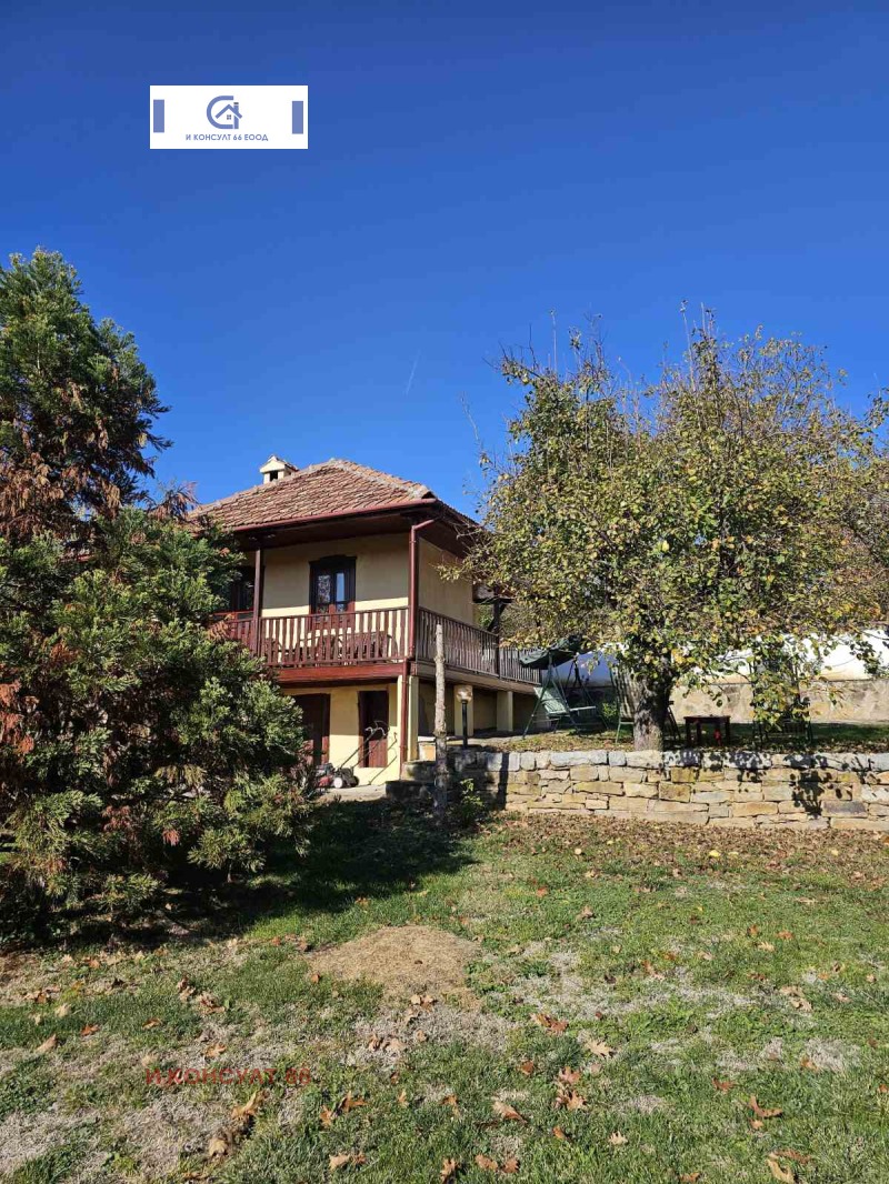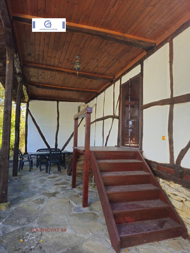 Основната къща с площ от 72 кв.м. е старо строителство, каменни основа, тухла, запазени и реновирани греди, които придават уникален и уютен вид на таваните. Състои се от: първи/приземен етаж с две помещения и втори етаж, до който се стига по външно каменно стълбище. Втори етаж: от входното антре се влиза във всекидневна с камина и трапезария, оборудвана кухня, две спални, мокро помещение, голяма баня с тоалетна и открита тераса с прекрасна панорамна гледка. По къщата е извършен основен вътрешен и външен ремонт като е съхранена нейната автентичност. Нов покрив, нова дограма, ламинат, дюшеме, гранитогрес, дървени плоскости и теракот.