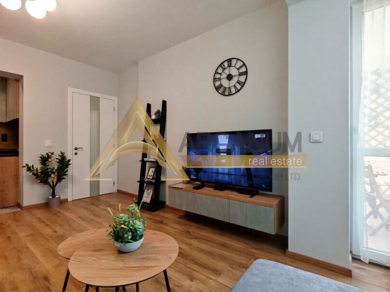 Жилището се състои от просторен хол, самостоятелна спалня, баня с тоалетна, коридор и тераса. Апартаментът е напълно обзаведен и оборудван с чисто нови мебели и електроуреди, готов за незабавно нанасяне.
