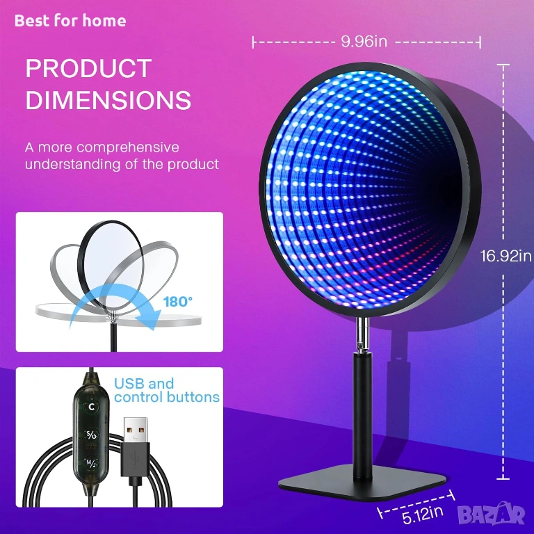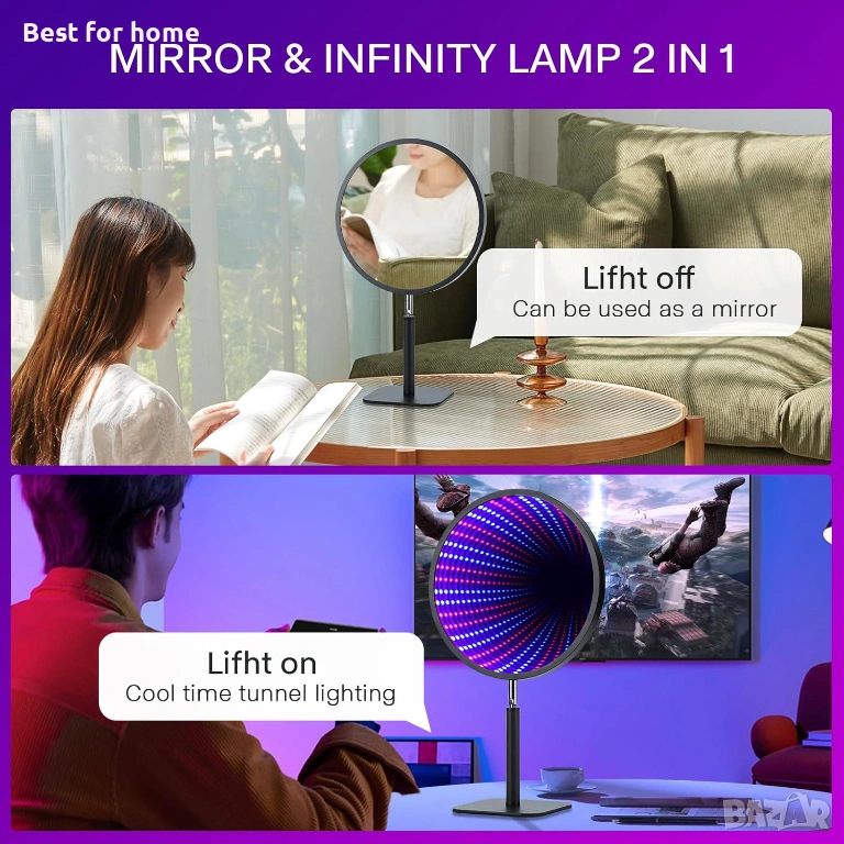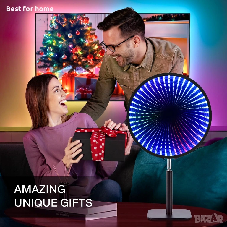 Универсална декорация: Идеална за осветяване на спални, игрални зали или домашни кина, тя обогатява партита, игри или музикални събития с уникална атмосфера. Лампата Infinity е и креативен избор за подарък за рождени дни, Коледа и други специални поводи, изразявайки грижа и признателност към семейството, приятелите или колегите.