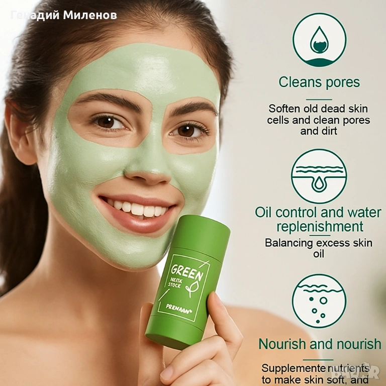 Маска за почистване на лице със зелен чай под формат на стик - HZS9/ Подходяща е за ежедневна употре → Обява 53316864