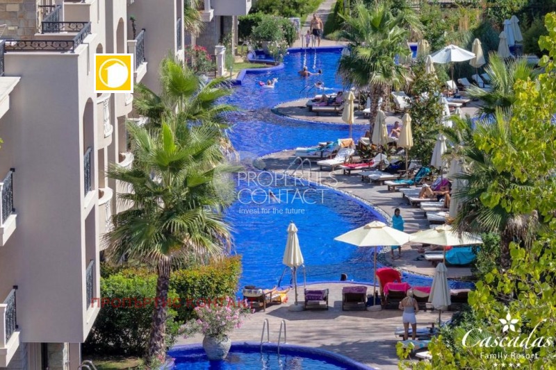 Продава се обзаведено студио с площ от 47 кв.м, разположено на 1 етаж в престижния комплекс „Каскадас“, Слънчев бряг — само 500 метра от плажа. Имотът предлага функционално разпределение: кухненски бокс, зона за спане, баня с тоалетна и тераса. Студиото е напълно обзаведено и оборудвано с електроуреди, подходящо както за лично ползване, така и за отдаване под наем. Сградата разполага с Акт 16, битов ток и целогодишна поддръжка. Районът е тих, зелен, с отлична инфраструктура, магазини, заведения и услуги в непосредствена близост. Комплекс „Каскадас“ е един от най-популярните в Слънчев бряг и предлага богата инфраструктура: • 9 басейна с детски секции • Джакузи, фитнес зали • Детски площадки и спортна анимация • 24/7 охрана, видеонаблюдение и поддръжка • Магазини, ресторанти и услуги Имотът е отлична инвестиция за ваканционно ползване или отдаване под наем в България.