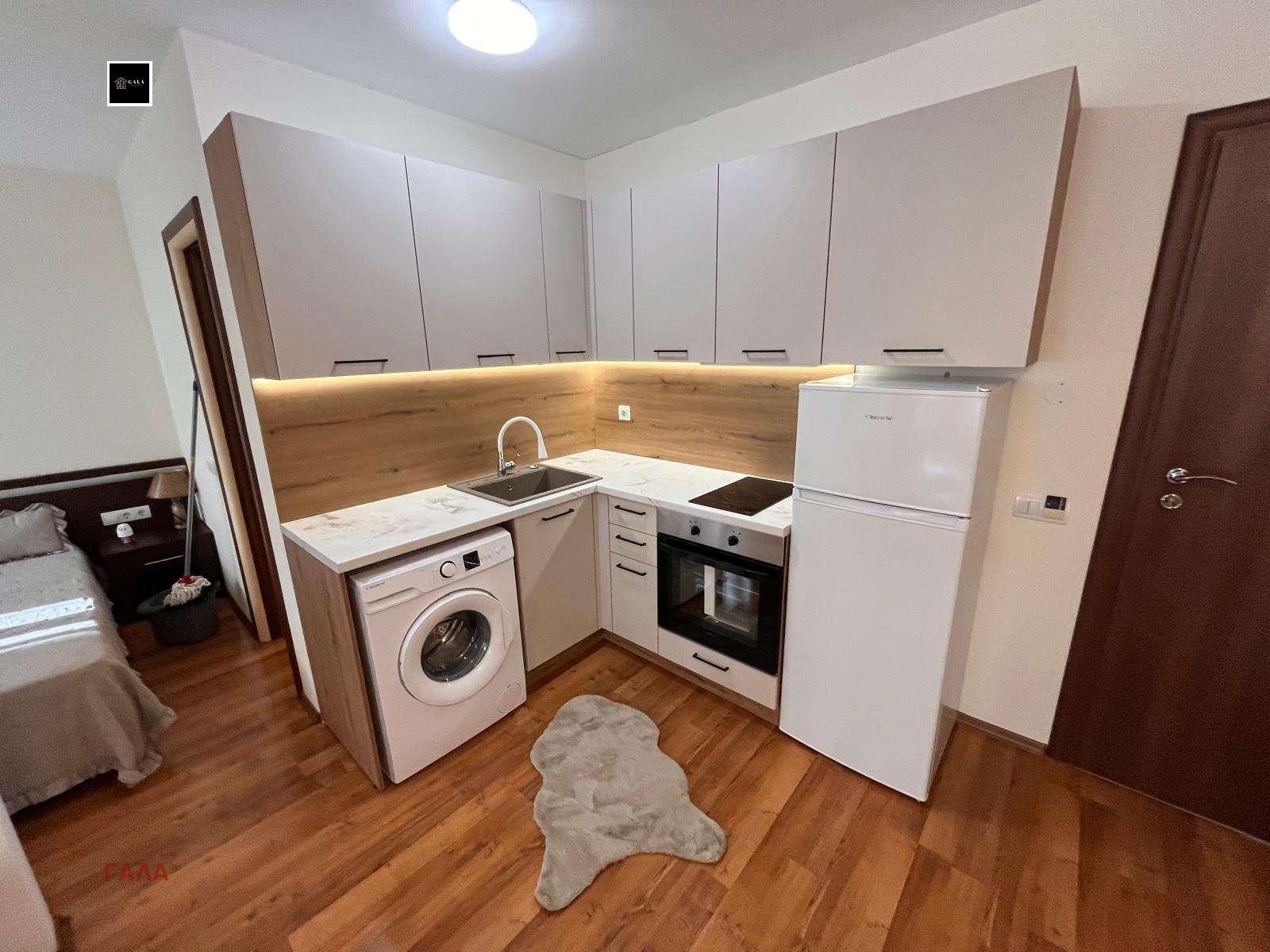 Апартаментът е напълно обзаведен с чисто нови, неизползвани мебели и електроуреди, готов за нанасяне веднага.