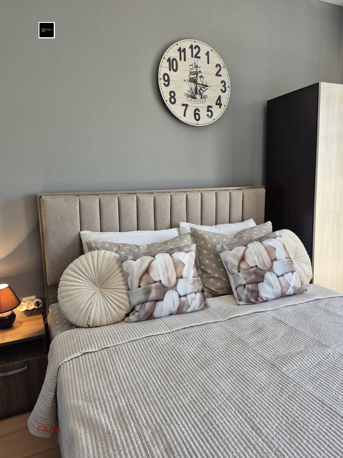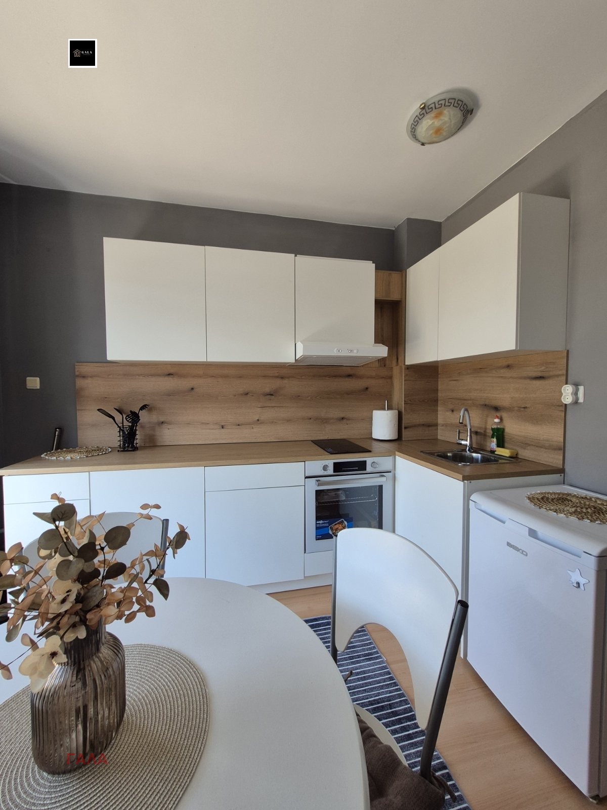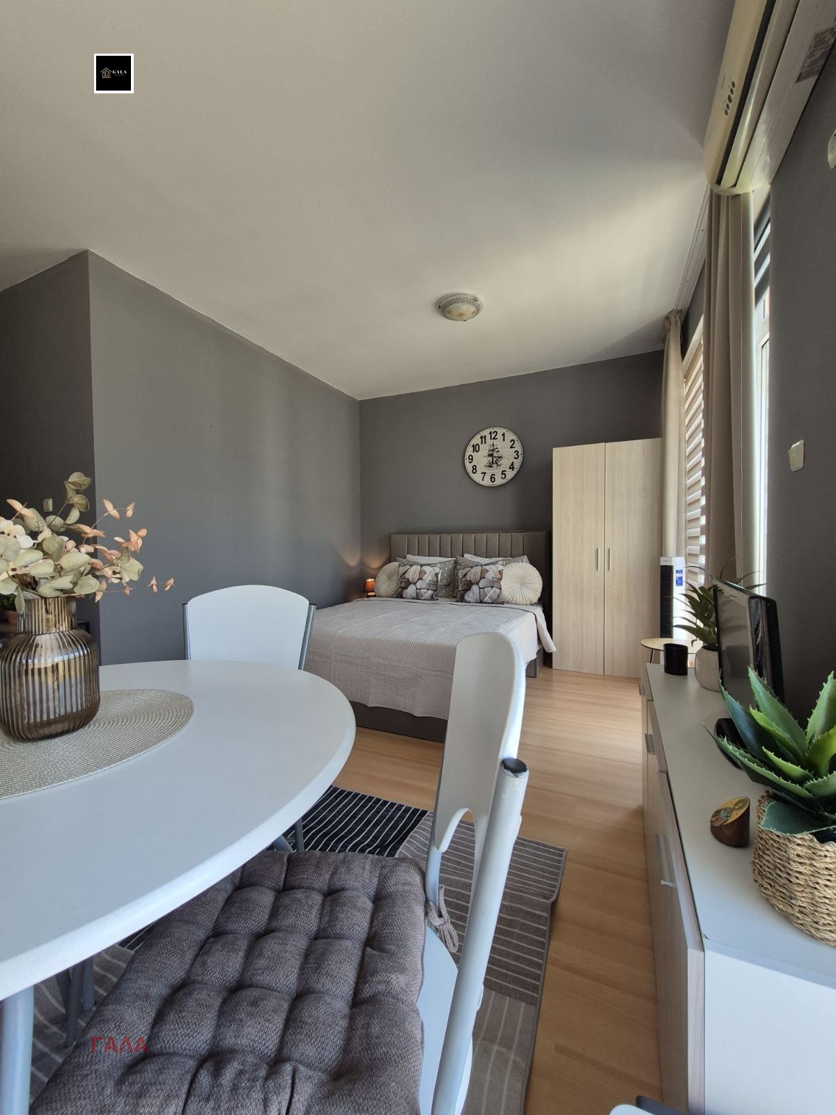 Жилището е завършено и готово за ползване, с модерен и стилен интериор и удобно разпределение. Мебелите са изцяло нови - ъглова кухня Икея, оборудвана с аспиратор, котлони и фурна, комфортна и красива спалня с матрак с размер 160/200 м.