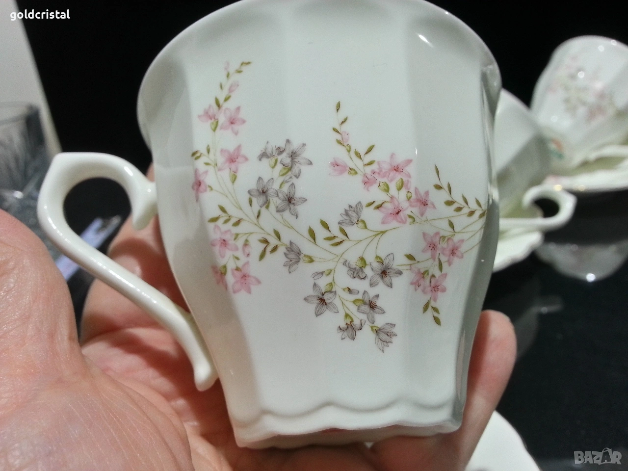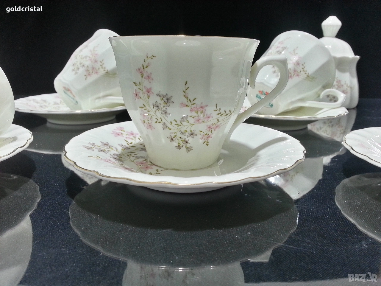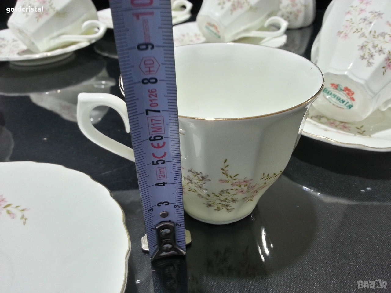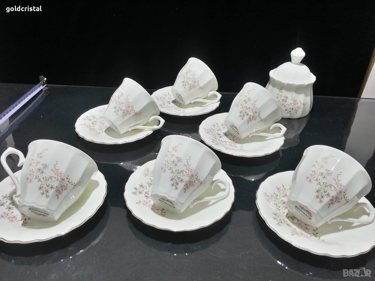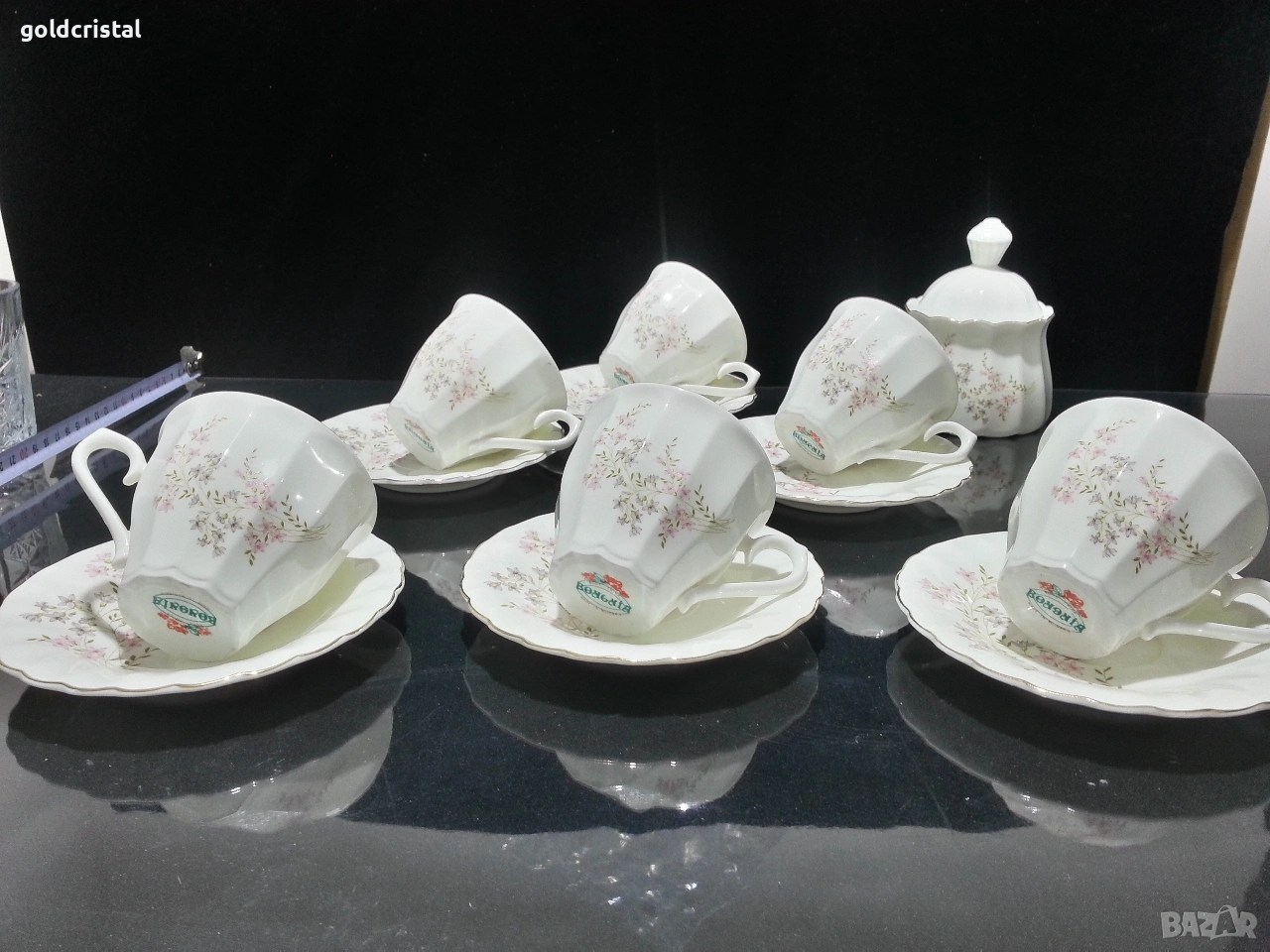 Стар български костен порцелан бононя чаши за чай кафе 180мл и захарница без забележки сервиз комплект сет лот ретро арт декор винтидж колекция стари старинни антикварни предмети обзавеждане за дома и семейството подходящи за подарък за ценители и колекционери