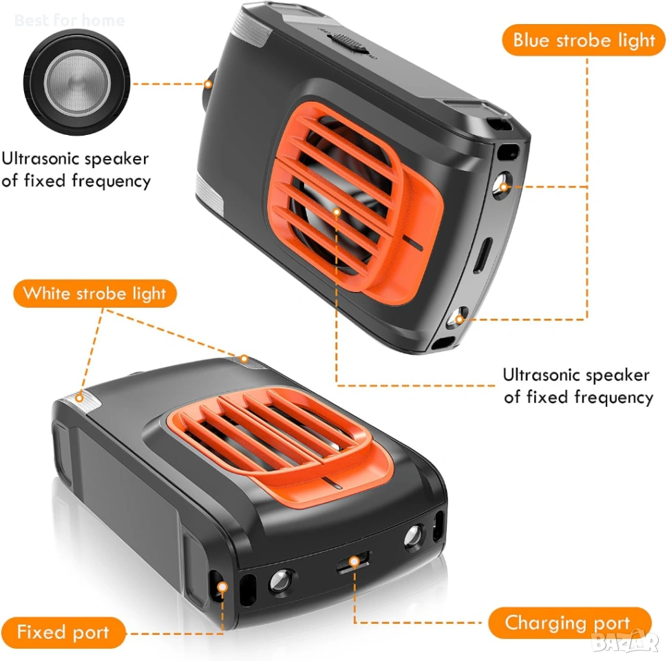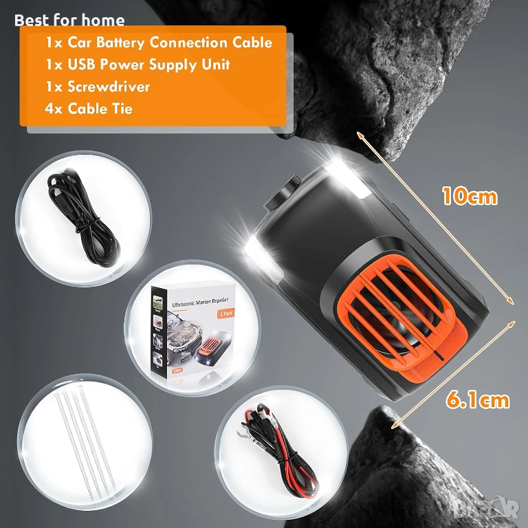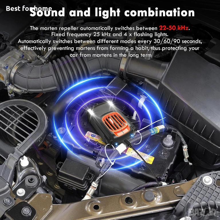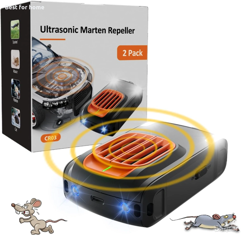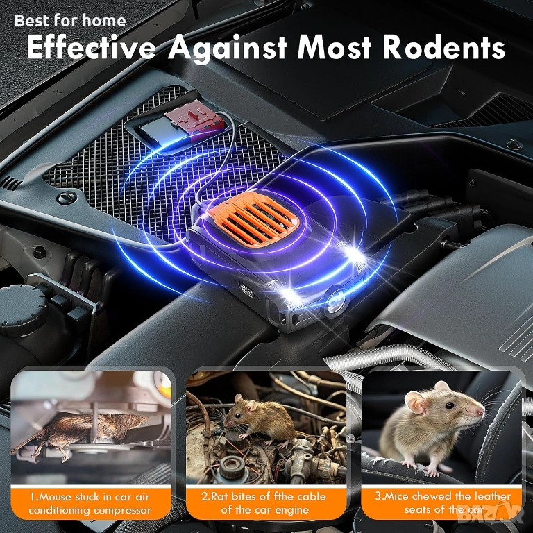 Безопасност: Ултразвуковите вълни смущават само белки, но не и хора или домашни любимци. Екологично чистият ABS материал е устойчив на топлина и не поврежда колата ви.