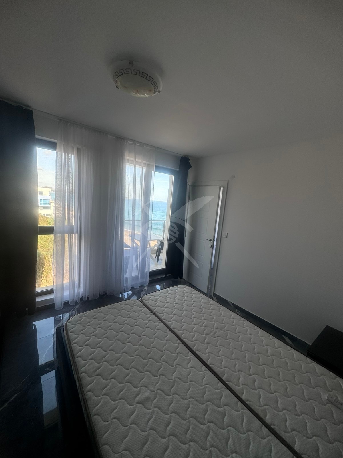 РАЗПРЕДЕЛЕНИЕ: Жилището разполага с площ 100кв.м., състои се от хол с кухненски бокс, две спални, баня с тоалетна и тераса с гледка море.