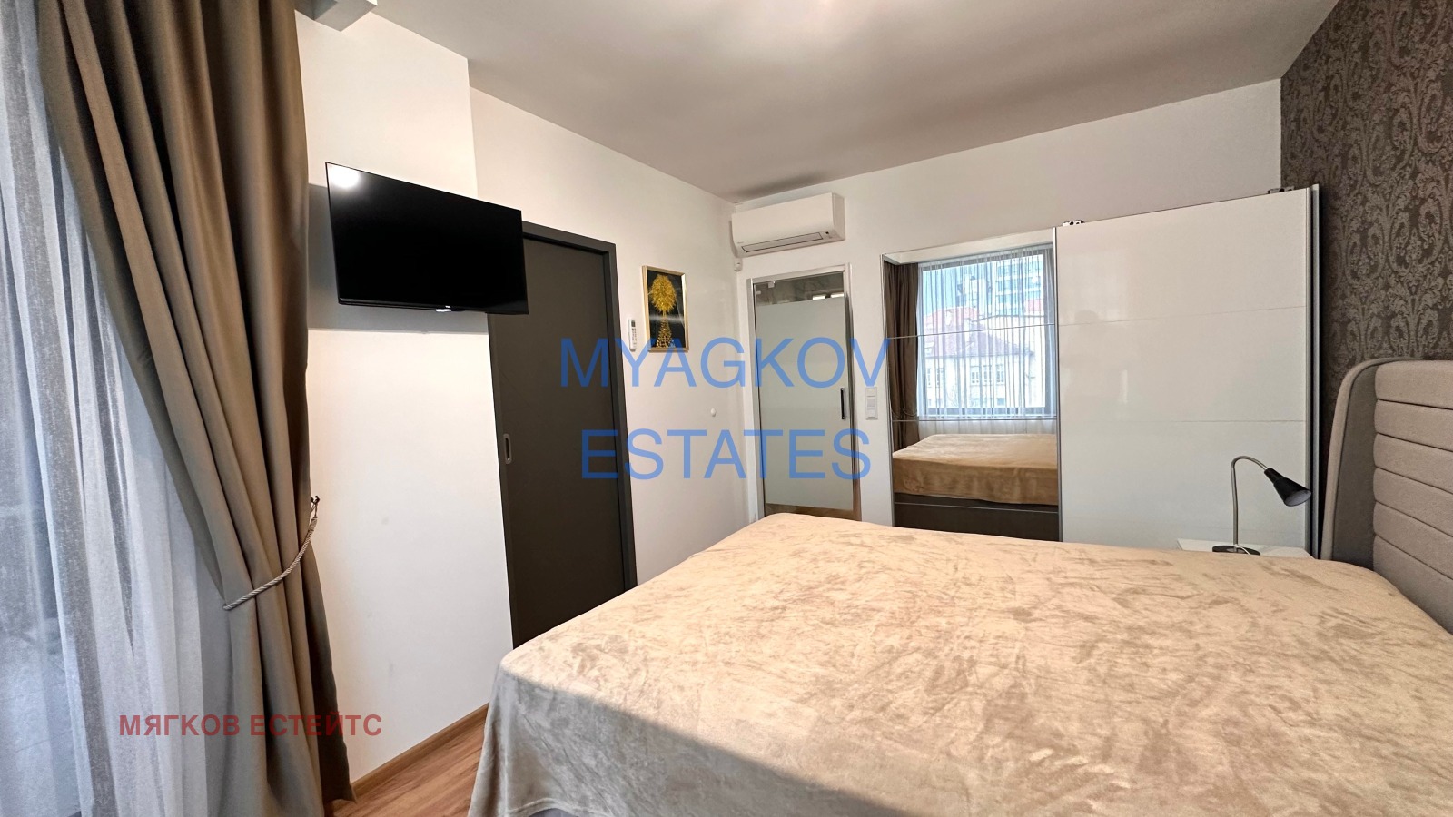 Мягков Естейт предлага под наем луксозен двустаен апартамент в центъра на гр. София. Разположен в нова сграда с луксозни общи части, асансьор и контролиран достъп. Намира се в непосредствена близост до мол София, метростанция Опълченска, множество магазини, заведения и други.