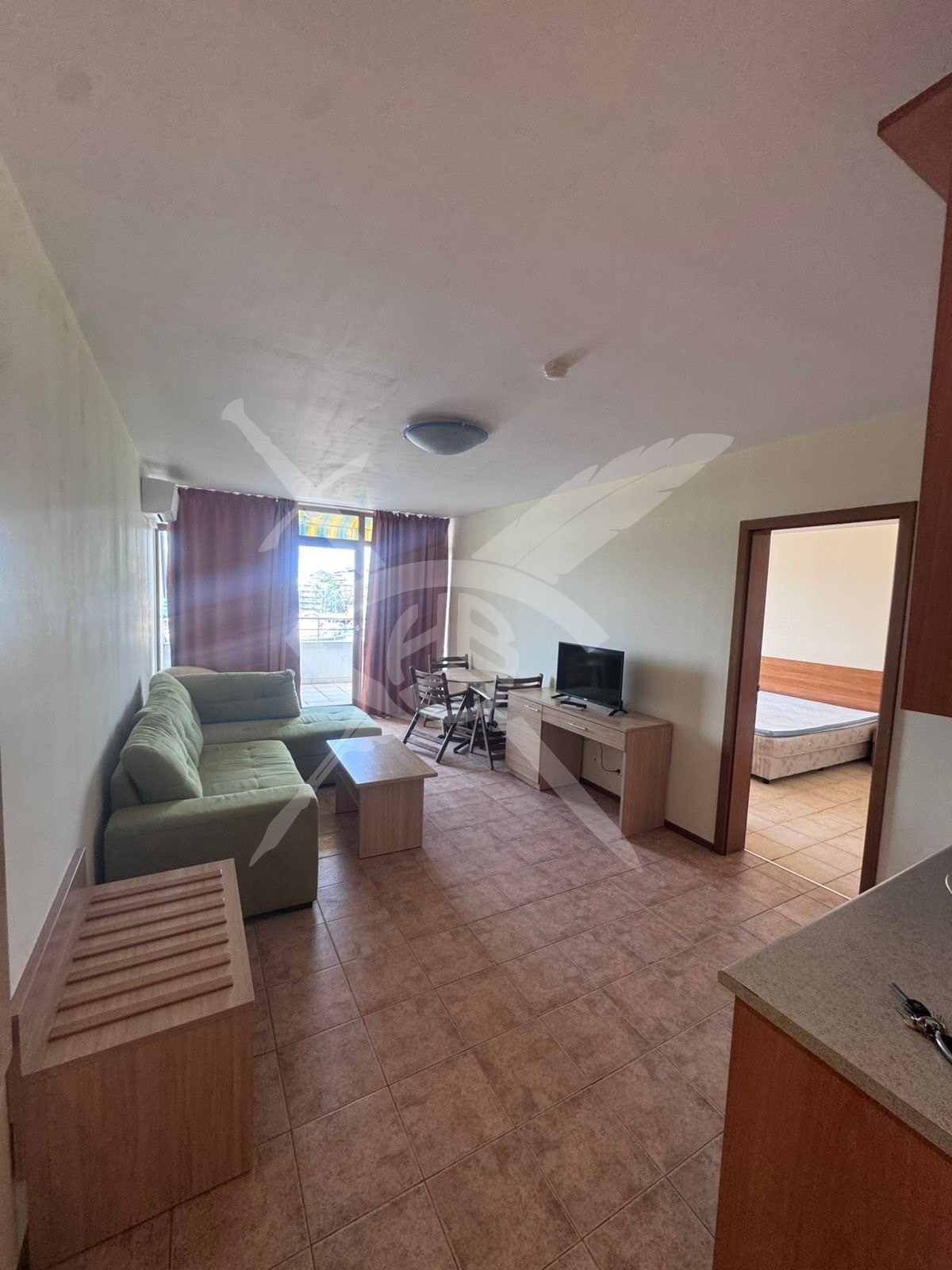 Компания Х представя на Вашето внимание двустаен апартамент в Слънчев Бряг.
