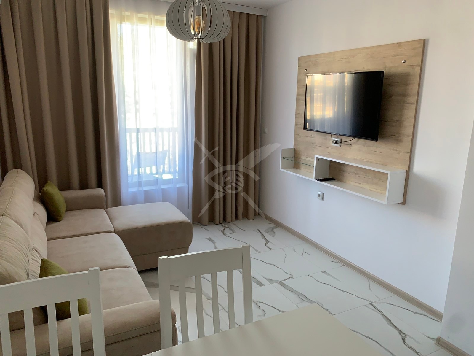 РАЗПРЕДЕЛЕНИЕ: Имотът разполага с площ 53кв.м., състои се от хол с кухненски бокс, спалня, баня с тоалетна и тераса.