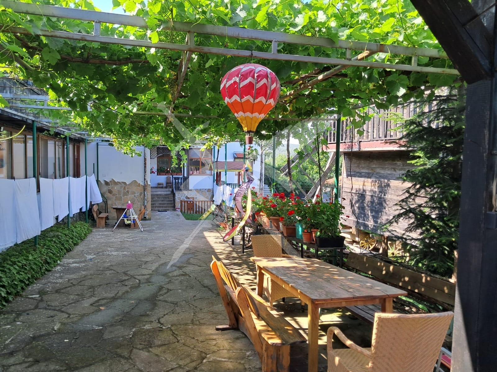 РАЗПРЕДЕЛЕНИЕ: Къщата разполага с площ 440кв.м., състои се от ресторант с кухня на първи етаж и шест стаи със санитарни възли на втори. Дворът е с площ 1250кв.м.
