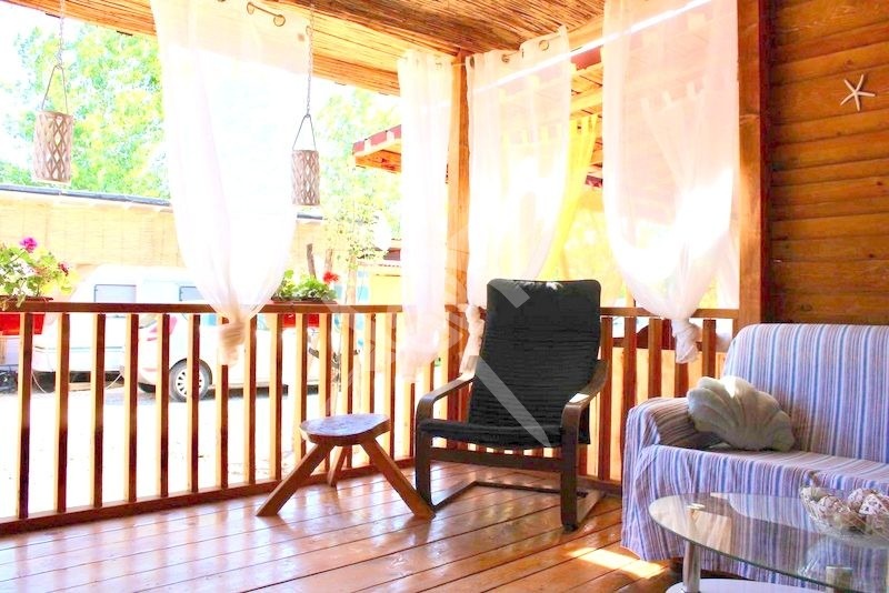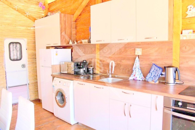 РАЗПРЕДЕЛЕНИЕ: Жилището разполага с площ от 100кв.м., като самото бунгало е с площ 30 кв.м. и има веранда 70кв.м.