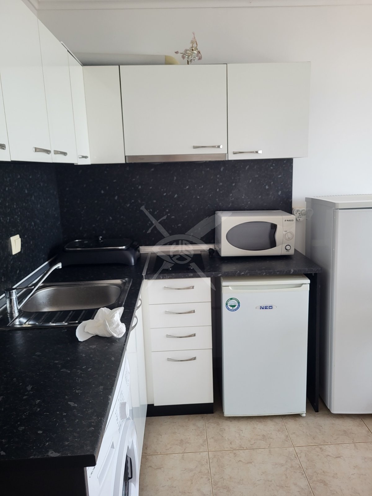 РАЗПРЕДЕЛЕНИЕ: Имотът разполага с площ 93кв.м., състои се от хол с кухненски бокс, две спални, баня с тоалетна и тераса с гледка море.