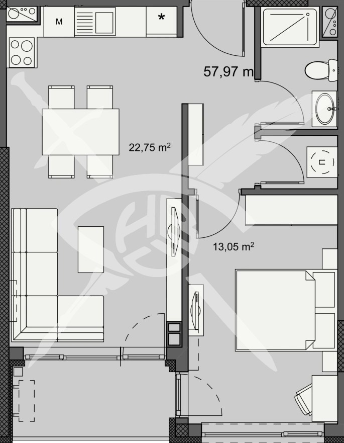 РАПРЕДЕЛЕНИЕ: Апартаментът разполага с площ от 69 кв.м., функционално разпределени в спалня, хол с кухненски бокс, антре и санитарен възел, мокро помещение и тераса.