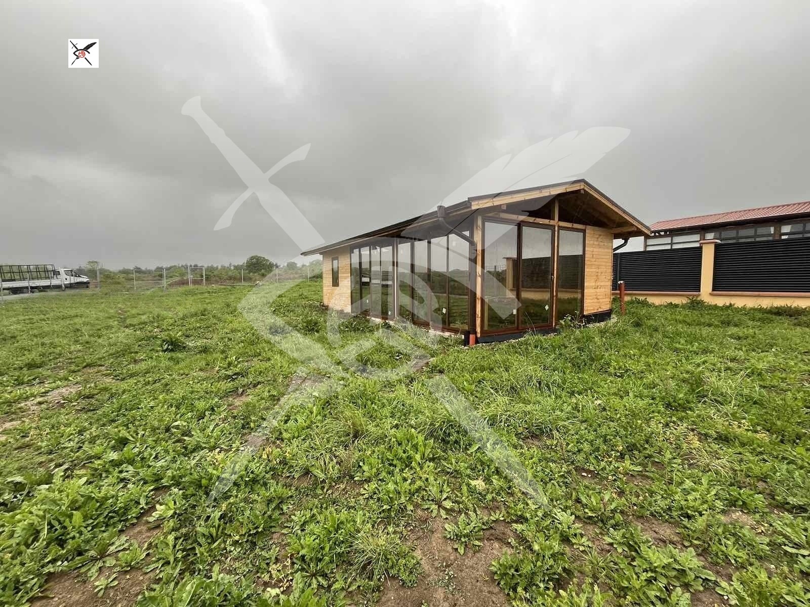 РАЗПРЕДЕЛЕНИЕ: Пълна документация и разрешително за строеж на двуетажна масивна къща 142m2, 4 спални. Построена лятна къща (дървена) 50м2 с фундамент, двускатен покрив + дограма френски тип. Наличен е платен лиценз за питейна вода, партида ток и канализация.