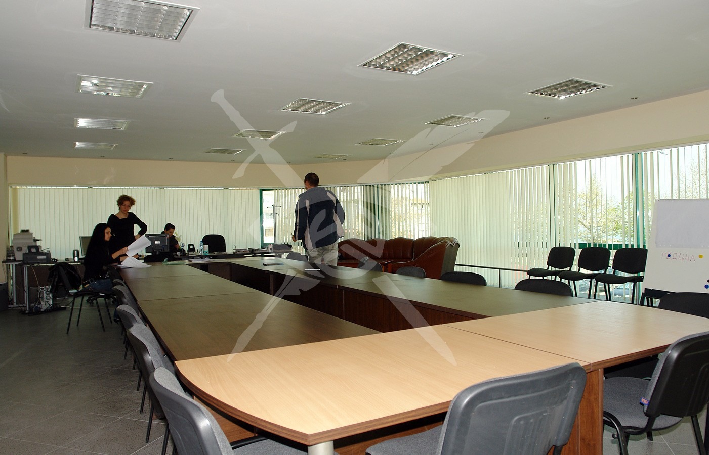 2-ви етаж: Голямо помещение, което е предвидено за телевизионно студио, с височина 4.5м. В помещението има само една колона, през която минава цялото окабеляване на сградата.