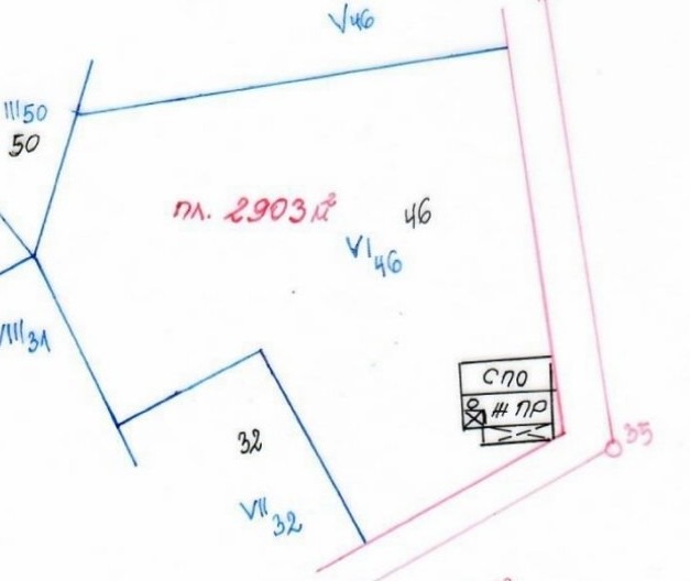 РАЗПРЕДЕЛЕНИЕ: Имотът разплага с площ 2903кв.м., УПИ с ток и вода в съседство, особено подходящ за жилищно строителство.