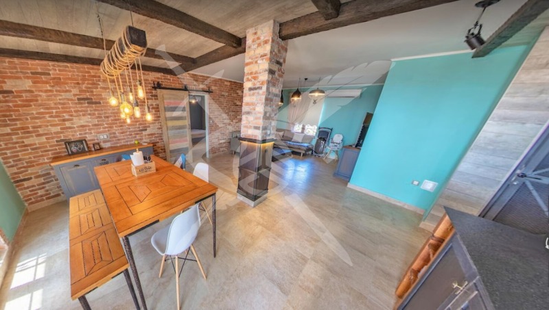 РАЗПРЕДЕЛЕНИЕ: Тристаен разполага с площ 470 кв.м. разпределена в следното функционално разпределение: 2 Спални и отделно хол с отделна кухня и баня и тоалетна с две тераси.