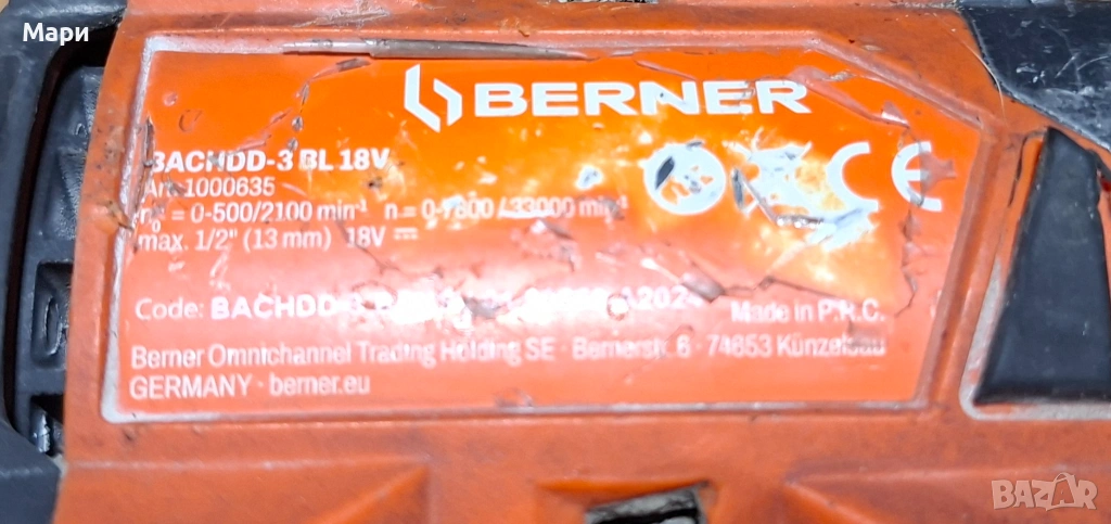 Berner винтоверт перфоратор и шлайф → Обява 53321979