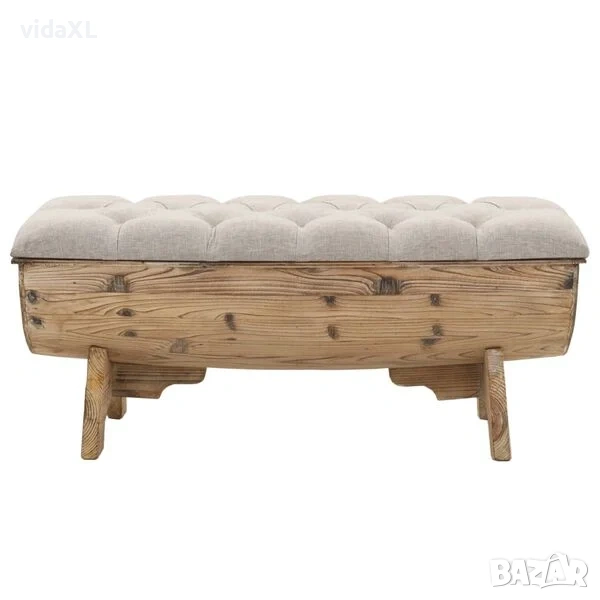 Комфортната пейка е изработена от чамова дървесина масив, а подплатената седалка е тапицирана с плат. Тя разполага с достатъчно пространство за съхранение на множество различни предмети, които да не са ви постоянно пред очите, като в същото време предлага лесен достъп до тях. Здравата ѝ дървена основа допринася за рустик излъчването.