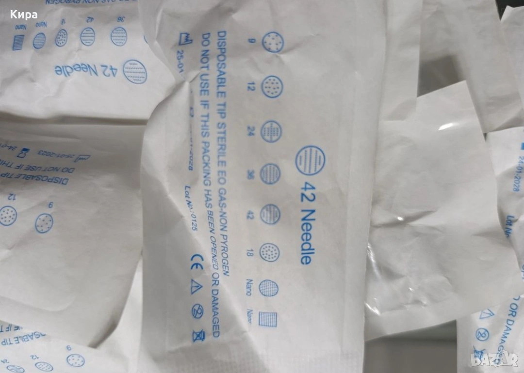 В комплекта ще откриете и 2 броя микроиглени приставки с по 12 броя игли и 10 броя микроиглени приставки по 42 броя игли. Както и удобен калъф за съхранение и пренасяне.