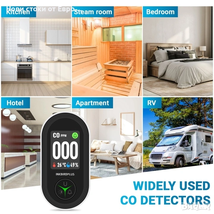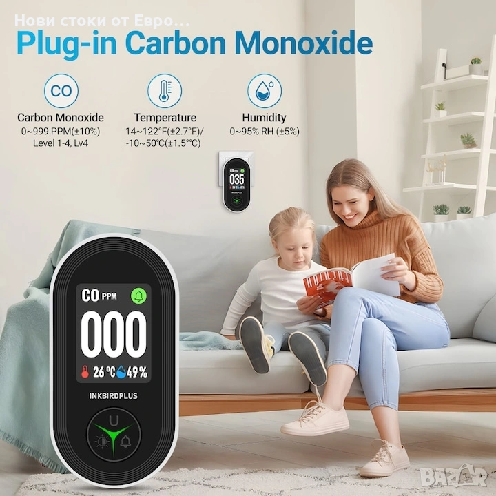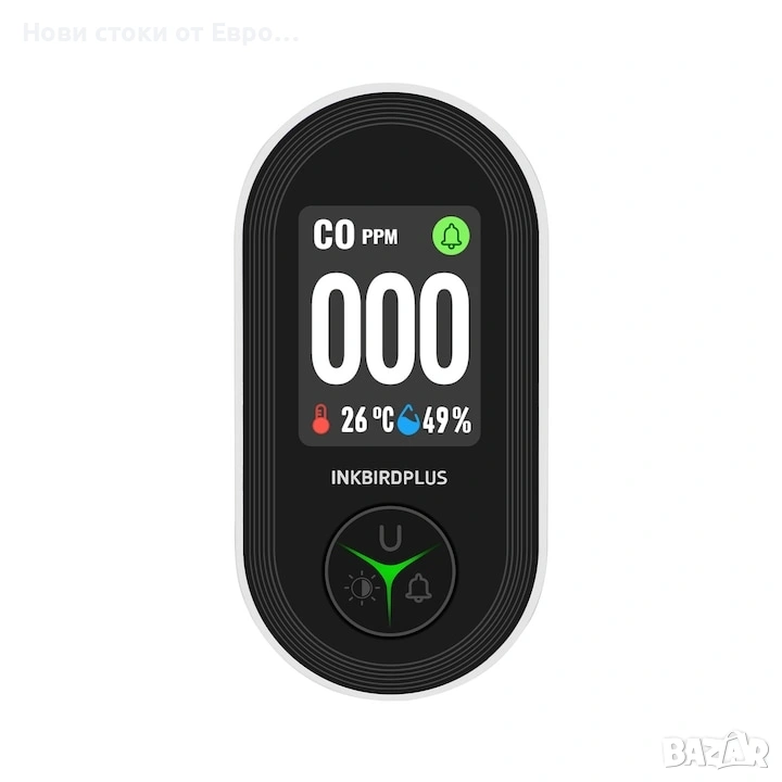 Детектор за въглероден оксид INKBIRD PTH-24D, електрохимичен сензор, HD дисплей,