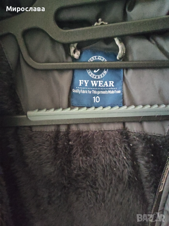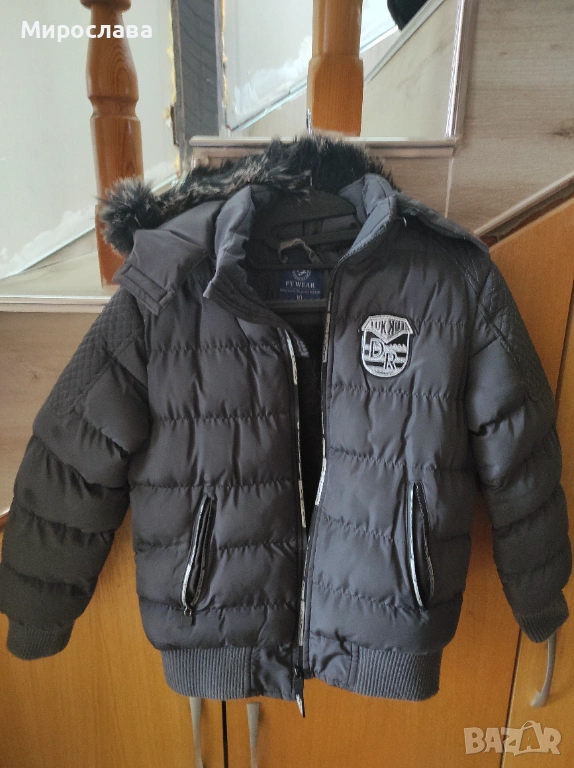 Зимно яке, по етикет 10 год. Идеално за студените дни,със сваляща се качулка.Няма други забележки,освен че липсва машинката на ципа на единия джоб.