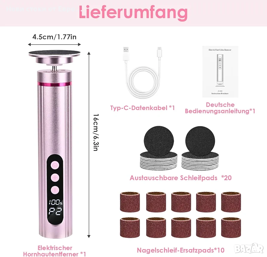 Перфектният подарък: ако често сте на море или в командировка и пътувате на дълги разстояния, преносимият и издръжлив комплект за грижа за краката е от съществено значение. Този продукт може да реши тези проблеми перфектно! Като подарък - Това е най-подходящият подарък за любителите на ноктите и хора, които се нуждаят от грижа за краката. Пакетът включва 1 x кабел за зареждане Type-C, 1 x електрическо устройство за обезпаразитяване, 1 x ръководство за потребителя и сменяема шлифовъчна подложка.
