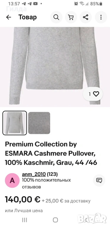 Esmara пуловер 100% кашмир S, снимка 1 - Блузи с дълъг ръкав и пуловери - 53322512 Esmara пуловер 100% кашмир S, снимка 2 - Блузи с дълъг ръкав и пуловери - 53322512 Esmara пуловер 100% кашмир S, снимка 3 - Блузи с дълъг ръкав и пуловери - 53322512 Esmara пуловер 100% кашмир S, снимка 4 - Блузи с дълъг ръкав и пуловери - 53322512 Esmara пуловер 100% кашмир S, снимка 5 - Блузи с дълъг ръкав и пуловери - 53322512 1/5