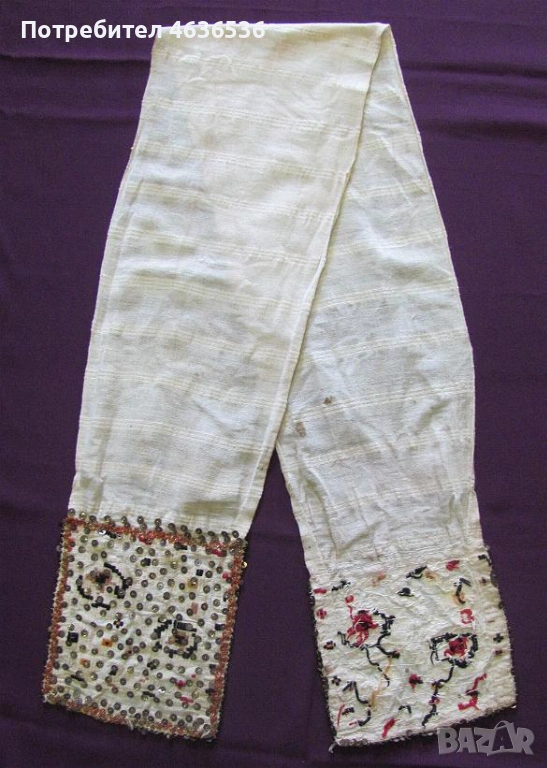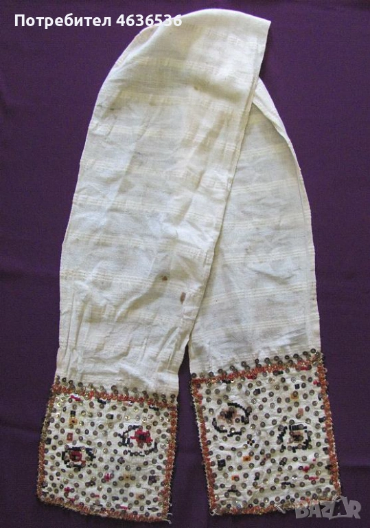 19век кенарена кърпа, мъниста и пайети 140х17см. → Обява 53322518