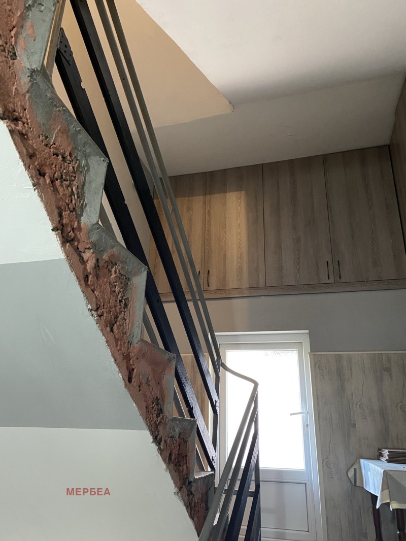 Разпределение: Под кота 0 са разположени мазе, стая за живеене, санитарен възел, помощно помещение.Вътрешно стълбище води до 1-ви етаж където има баня с тоалетна, кухня и голям хол.На вторият етаж са разположени две спални.Тавана е висок и може да се използва пълноценно.