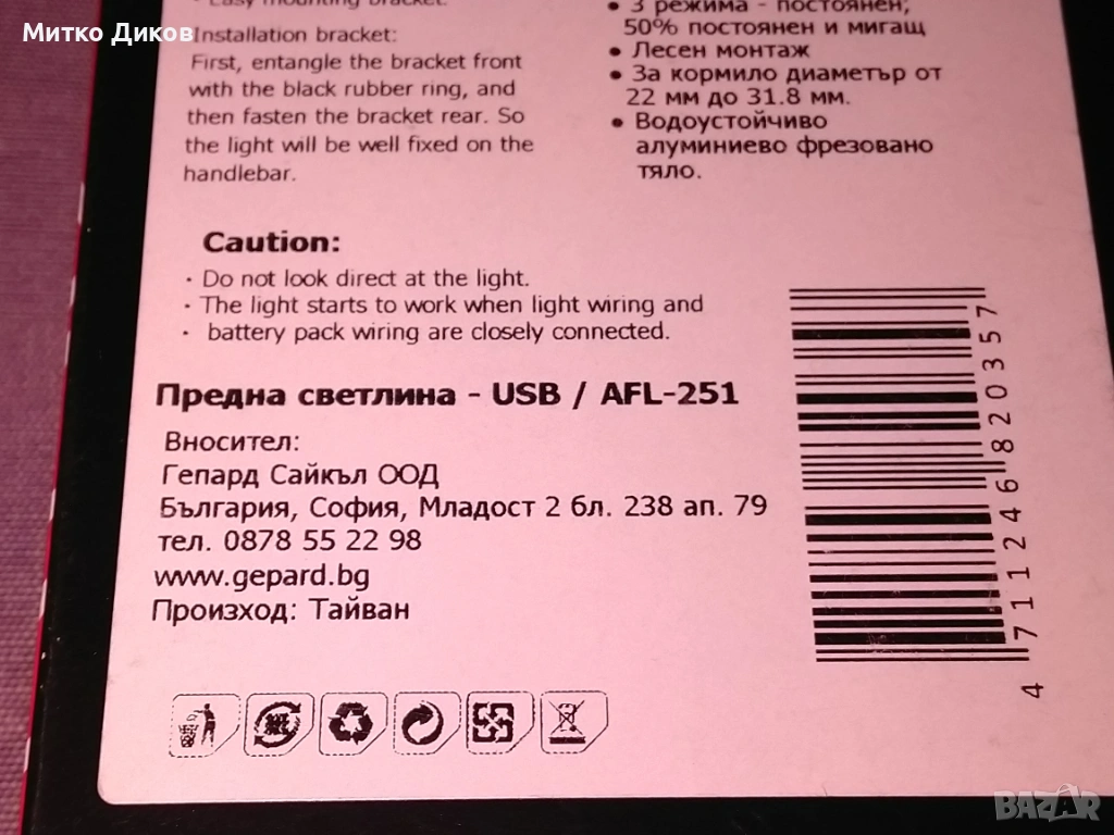 - Използва USB батерия,която НЕ е включена в цената