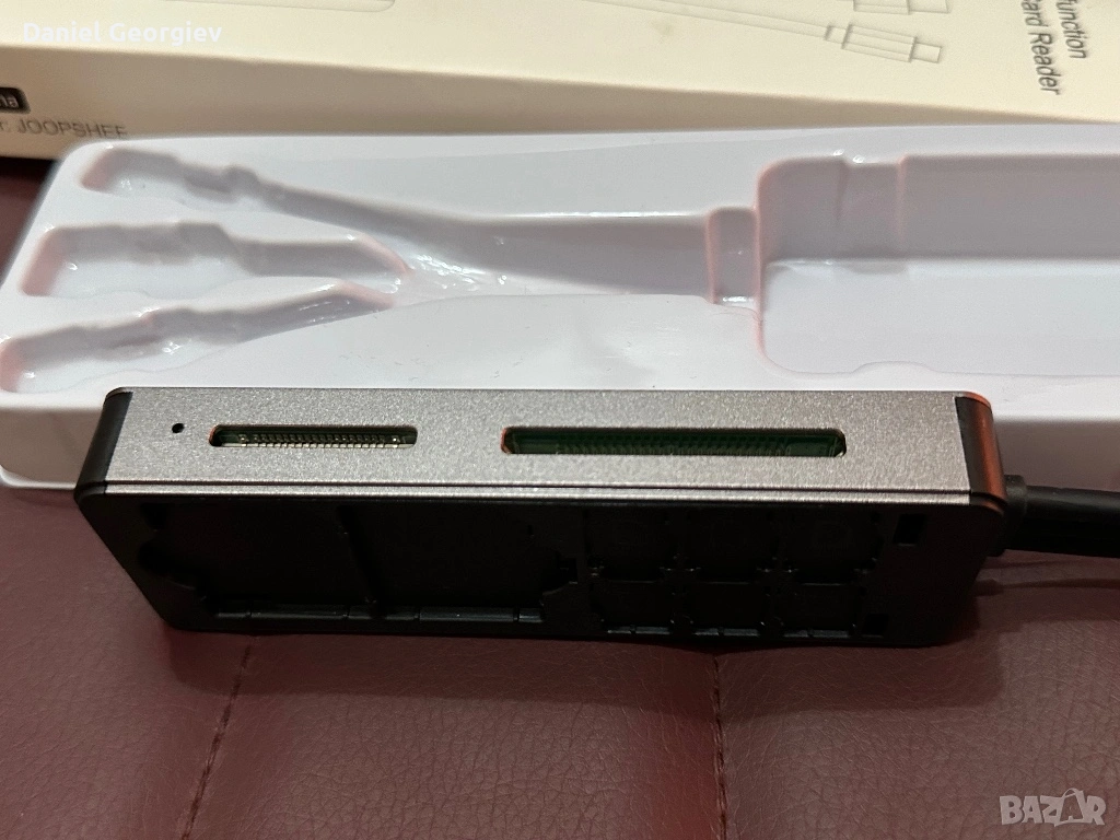 Продавам неупотребяван четец 8-в-1 адаптер за четец на SD карти, алуминиев, с кутия за съхранение на карти, SD/TF/CF/MS/XD/CFast/Memory Stick Pro Duo, USB 3.0 C&A порт за телефон/таблет/компютър/лаптоп.