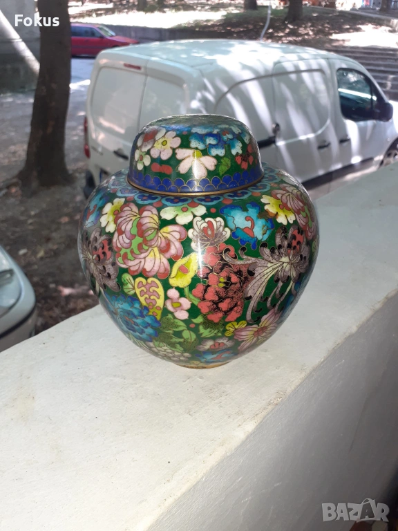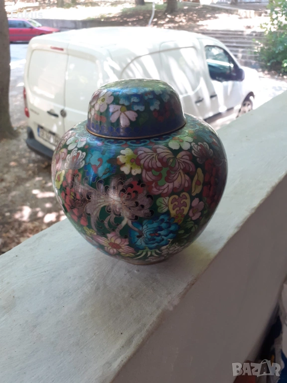 Клоазоне - Страхотен стар буркан с капак бронз емайл → Обява 53323541