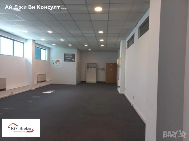 Агенция за недвижими имоти IGV Consult предлага под наем офис в Младост 1. Самостоятелна офис сграда с двор и паркинг, охрана СОТ, видеонаблюдение и контрол на достъпа. Разпределение: Обща площ от 421кв.м. Самостоятелен вход. Първи етаж. Три големи помещения, шест отделни помещения, преградени с гипсокартонени преградни стени, оборудвана кухня, сървърно помещение, 2 бани с тоалетна. Подходящ за офис/административна дейност; IT компания; Архитектурно/инженерно бюро; Рекламна или маркетинг агенция; Онлайн бизнес / e-commerce екип; Финансова/счетоводна къща; Юридическа кантора; Обучение / консултантска / творческа дейност; Арт студио или дизайн школа; Център за обучения по програмиране, финанси, маркетинг; Производство и др. Климатизация: термопомпена инсталация и климатици. Офис обзавеждане: Офисът се отдава необзаведен. Базов наем: EUR 6,5 /кв.м. Паркинг: Възможност за наемане на до 7 паркоместа /1 паркомясто = EUR 75/месечно/. Зона за свободно паркиране около сградата. Градски транспорт: Спирки на метро до сградата и няколко автобусни линии на 200м от сградата. ДДС: Всички цени са без ДДС. За повече информация и огледи: отговорен брокер - Тодор Железчев- 0885132725