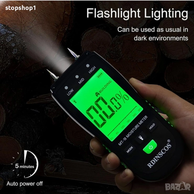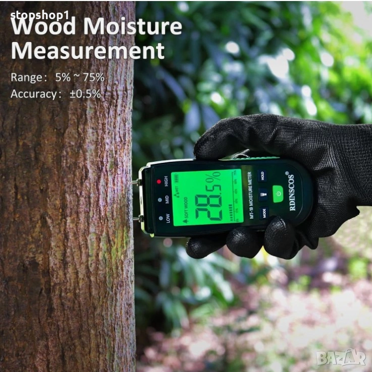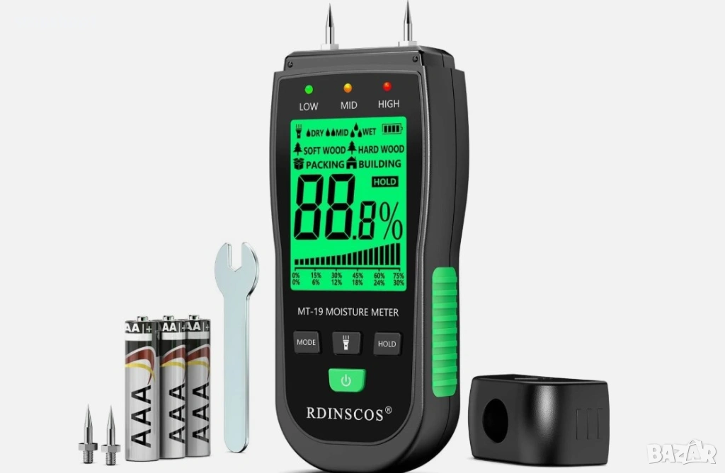 RDINSCOS Влагомер за дърва, влагомер за дърва за огрев, тестер за влажност на стени (MT19B)