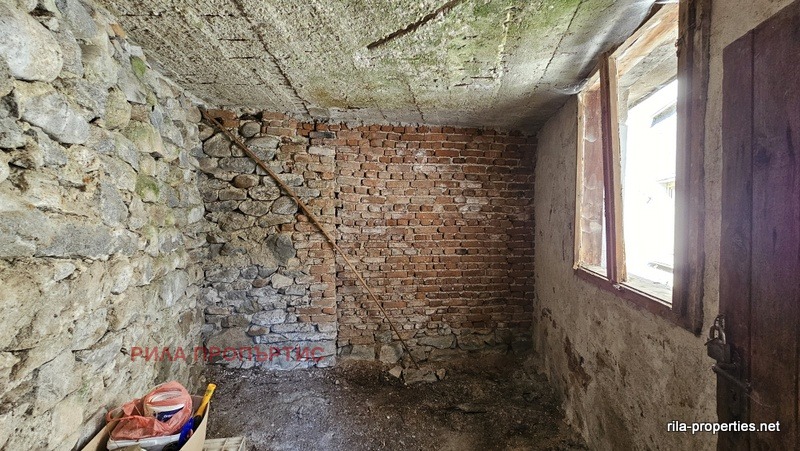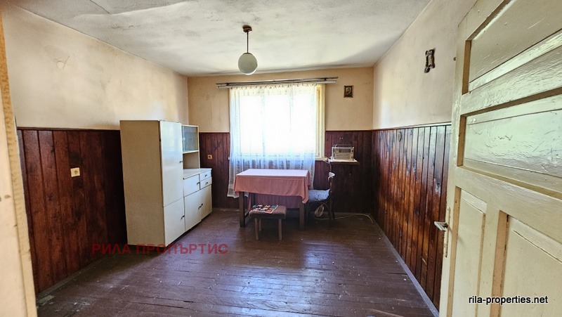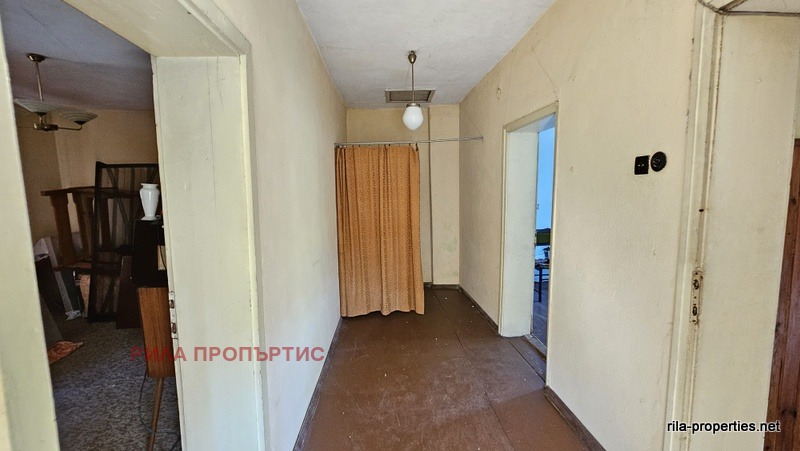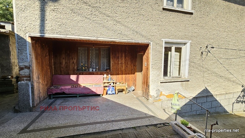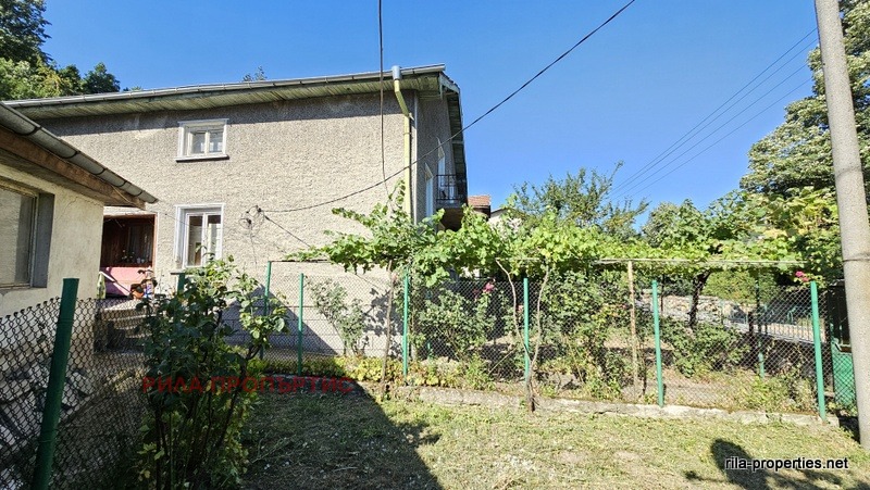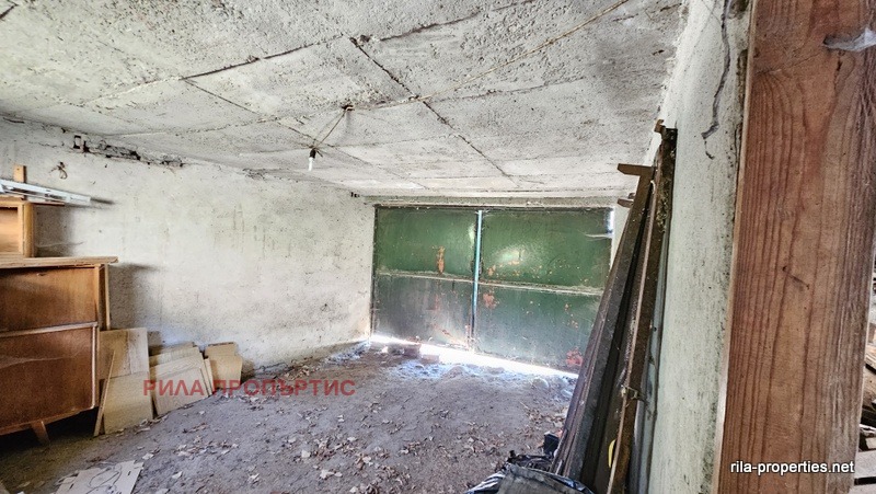 Източен близнак от масивна двуетажна къща с РЗП от 127 кв.м., ведно със самостоятелен двор от 298 кв.м., лятна кухня 37 кв.м. и масивен гараж от 43 кв.м. в Курорт Момин проход, област Софийска. Разпределението на жилищната част е както следва: два отделни входа от към двора ни водят до широк коридор на приземното ниво в което са разположени кухня с трапезария и всекидневна стая. Вътрешно масивно стълбище за етаж втори, където са две спални помещения, едното с балкон. Едно избено помещение от около 20 кв.м. В сградата няма вътрешна баня и тоалетна, но има подходящи места за изграждане и на двата етажа чрез преграждане на дъното на коридорите. Подовете са на дюшеме, стени и тавани на мазилка, стара дървена дограма. Нужен е цялостен вътрешен основен ремонт. В двора лятна кухня също за ремонт, до която съществува масивно помещение баня и тоалетна също за ремонт. Нови комуникации на улицата, положен нов асфалт, граничи с малка рекичка. Имотът е на 200 метра от центъра, но в тих квартал, граничи със смесена гора от юг. Собствени партиди за електро и ВиК. Опция за закупуване и на другата част от къщата и двора на цена по-ниска от обявената в тази оферта.