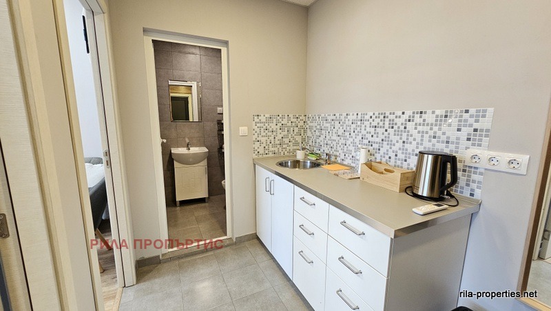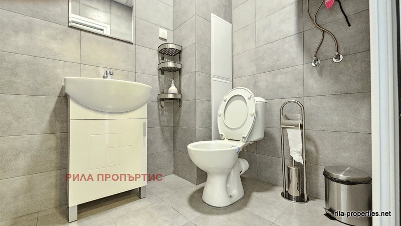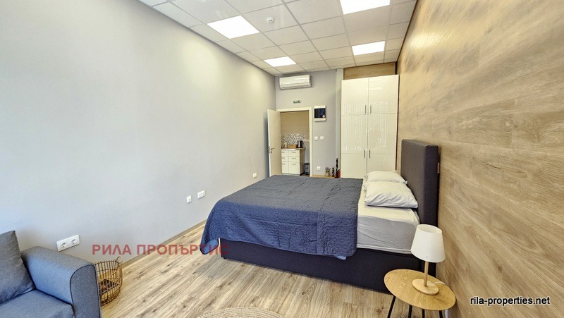 Луксозно обзаведен самостоятелен двустаен апартамент в обществена сграда със смесено предназначение в самия център на град Костенец, област Софийска. Ново масивно строителство, с Удостоверение за въвеждане в експлоатация от декември 2023г. Стени на шпакловка и латекс - частично ламинат, окачени тавани с LED осветление, подове на ламиниран паркет, антре и баня с тоалетна на гранитогрес. Висококачествена PVC дограма тип френски прозорец от най-висок клас на шумо и термоизолация, вертикални плътни щори. Разпределението е както следва: от централната улица по широко стълбище (общи части) се достига до второ ниво на сградата, следва антре в което е обособен кухненски бокс и чрез което е достъпа до всекидневната, спалнята и баня с тоалетна. Климатизацията е решена с два броя инверторни климатици от висок клас. Самостоятелни партиди за електрозахранване и ВиК, противопожарна система. Жилището не е ползвано до момента, подходящо е както за живеене, така и за бизнес офис, зъболекарски кабинет, медицински услуги и други подобни обществени дейности. Продава се с обзавеждането така както е по снимките. Собственост на юридическо лице, цената е без ДДС, издава се данъчна фактура освен нотариален акт за покупко-продажбата.