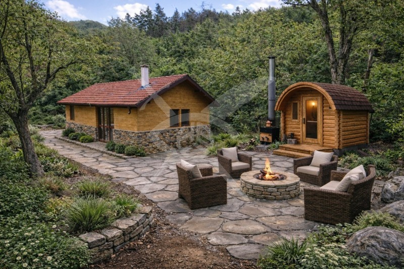 Около къщата са обособени равни площи с цел отдих, барбекю, градина или други.