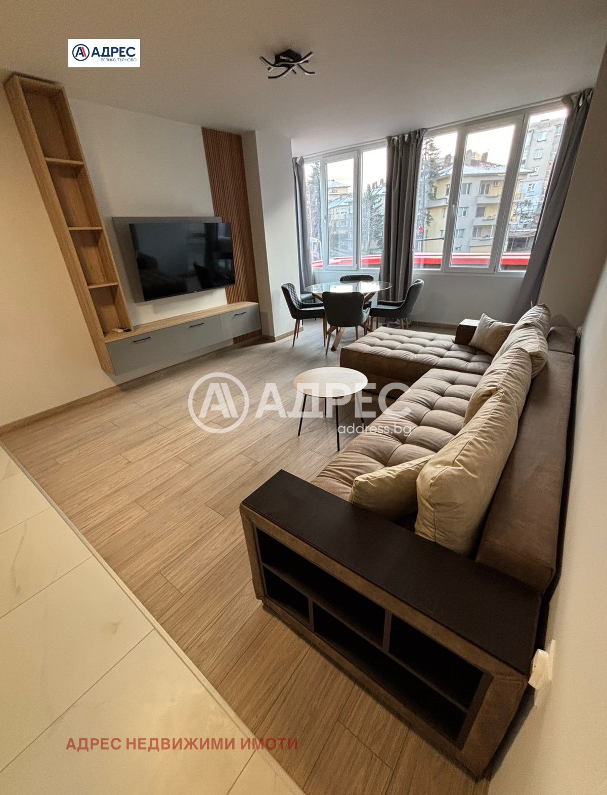 Луксозен тристаен апартамент под наем Център, гр. Велико Търново. Адрес Недвижими имоти предлага под наем елегантен тристаен апартамент, разположен в централната част на град Велико Търново. Жилището е след основен, висококачествен ремонт и очаква своите първи наематели. Апартаментът е напълно обзаведен с нови, стилни мебели и оборудван с всички необходими електроуреди за съвременно и комфортно семейно ежедневие климатици във всяка стая, съдомиялна машина, телевизори, модерна и функционална кухня. Разпределение: светла и просторна дневна с кухненски бокс, две уютни спални, баня, отделно тоалетна и коридор. Жилището съчетава комфорт, практичност и усещане за дом. Зад блока е разположен голям паркинг, предназначен за живущите, осигуряващ удобство и спокойствие за семейството.