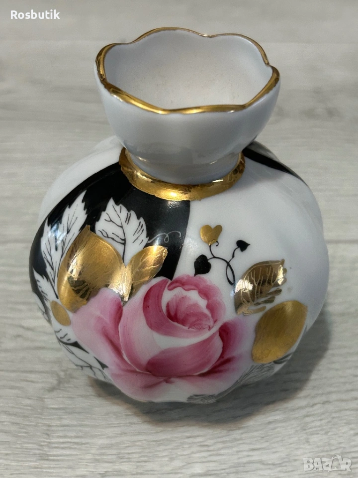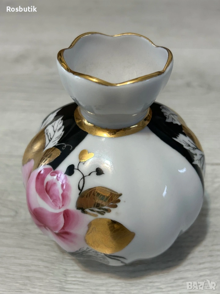 Старинна съветска порцеланова ваза ЛФЗ височина 13см. С позлата ръчно рисувана - идеална за пролетни зюмбюли, момини сълзи и нарциси 🪻🌼🌷за колекция и декорация .