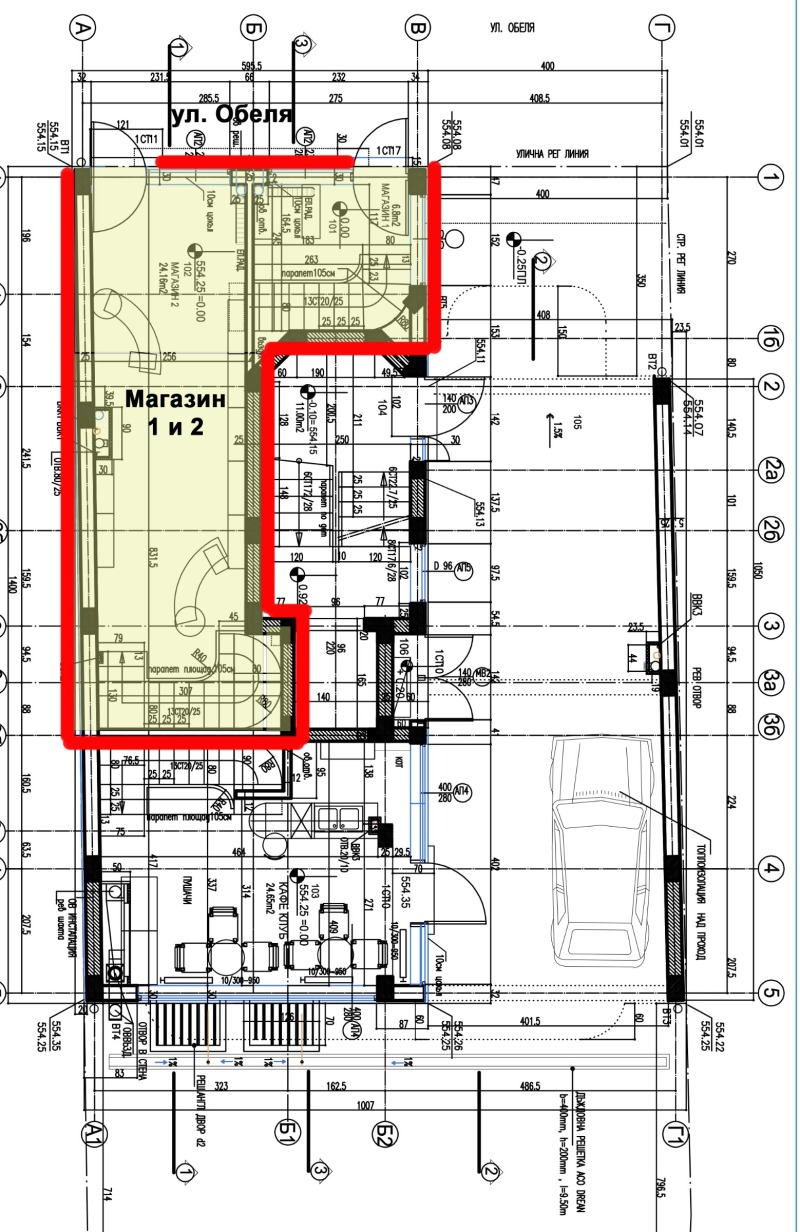 ПРОДАЖБА НА МАГАЗИН с лице към ул. Обеля, с ОЗП - 100,43 кв.м.; ЗП - 77,82 кв.м.