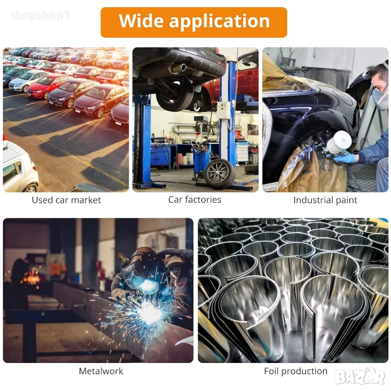 - Дебеломер за боядисване на автомобили: Дебеломерът се използва за измерване на дебелината на позлатения и покрит лист върху метала, като например боя/емайл/хром върху стомана, боя и анодизирано покритие върху алуминий/мед.