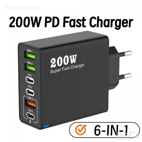 Зарядно/Адаптер ADC-PD010 200W GaN 220V / 3xPD 100W Max / 3xUSB / Черен / Баркод : 456606, снимка 1 - Оригинални зарядни - 53323979 1/1