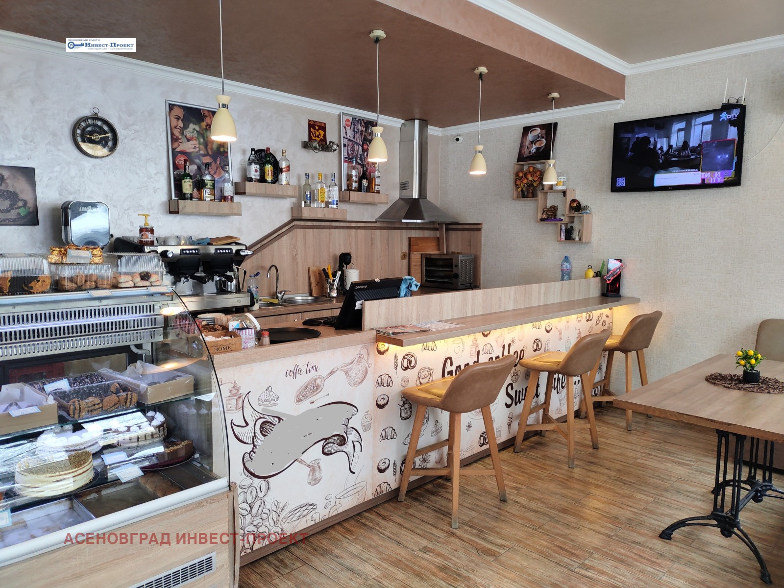 Кантора 'Инвест-Проект' предлага за продажба КАФЕ сладкарница, със статут по документи на Кафе Аператив, с отлична локация в гр. Асеновград.