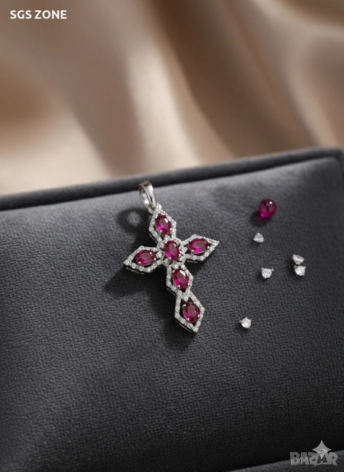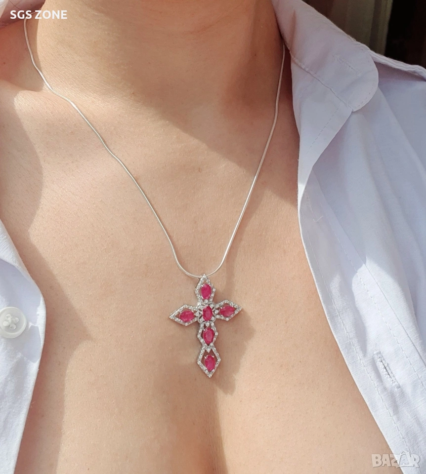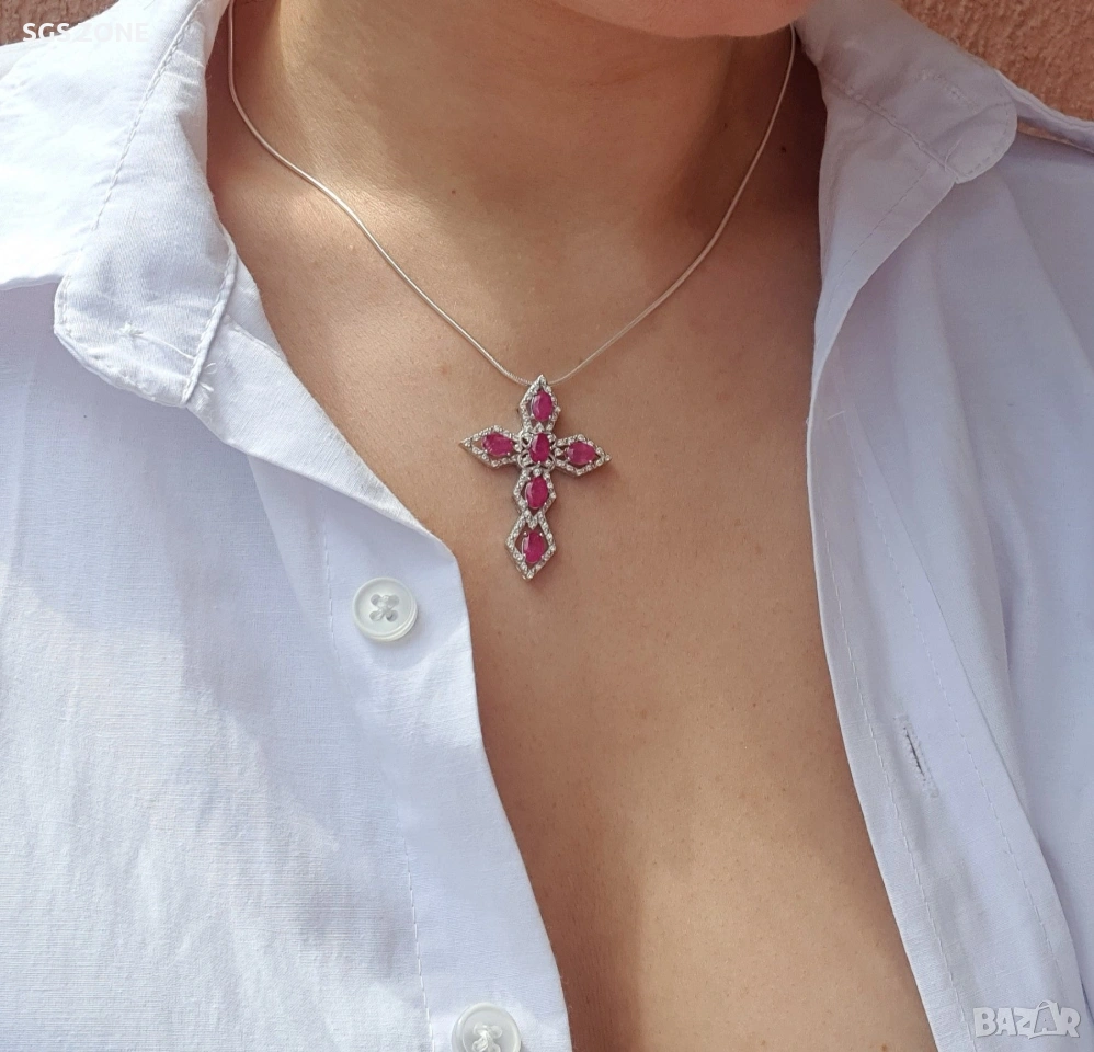 Стилен и масивен сребърен кръст с рубин от Таиланд. Още снимки и видеа на продукта в Instagram и Facebook sgs.zone, уебсайт sgs.zone. Можем да изпратим допълнителна информация чрез Viber. Изпращане Speedy и Эконт. Шоурум в София, Дондуков, 53. Всички продукти са със сертификати и подаръчна кутия. Продукти имат допълнителни български маркировки