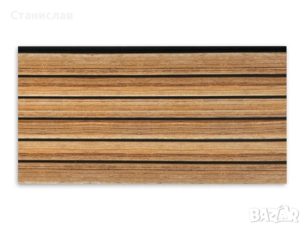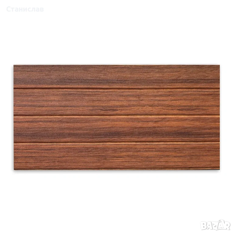 Декоративен 3D стенен панел с модерна визия на дървена ламперия в топъл кафяв тон.
