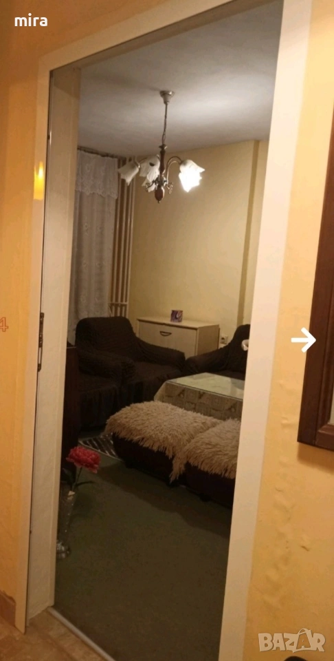 Обзаведен 1 ст. апартамент Люлин 10. Разположение хол, кухня , коридор , баня с wc, тераса, малко помещение за вещи. Конструкцията е ЕПК-94г. Етаж 4 от 11. 50км2 с възможност за изба. Обзаведен с необходими мебели , отопление е на тръби от тец, но който желае може с топлинни уреди да се повиши температурата. Цена на наем 440 евро. Не се допускат домашни любимци. Само за частни лица.