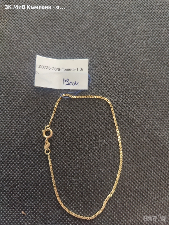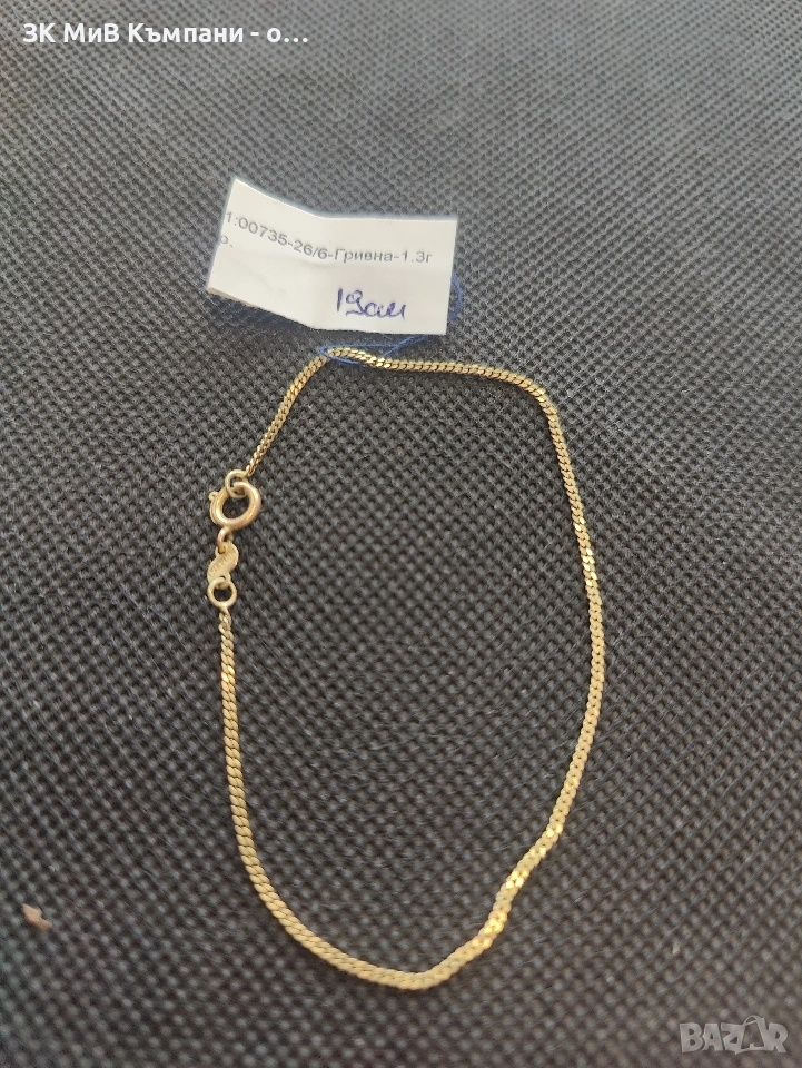 Златна гривна 1.3гр 19см, снимка 1 - Гривни - 53324197 Златна гривна 1.3гр 19см, снимка 2 - Гривни - 53324197 Златна гривна 1.3гр 19см, снимка 3 - Гривни - 53324197 1/3