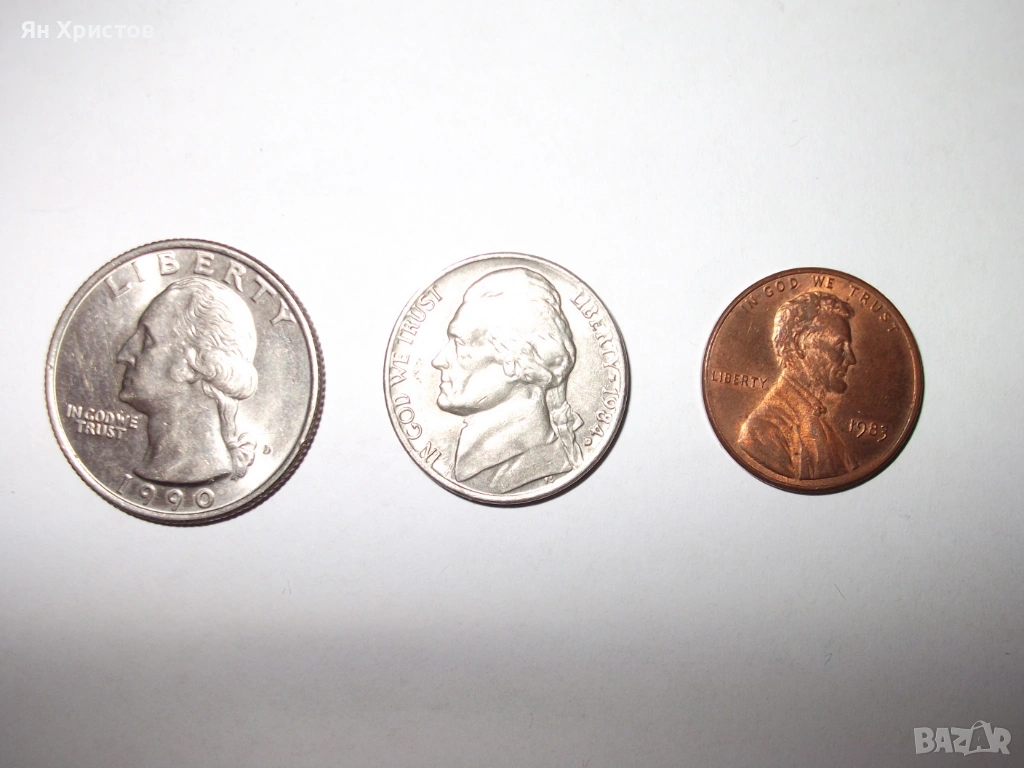 Една от четвърт долар 1990 г. Една от пет цента 1984 г. и една от един цент 1985 г. Всичките са в отлично състояние, много подходящи за колекция. На предложения и въпроси ще отговарям своевременно.
